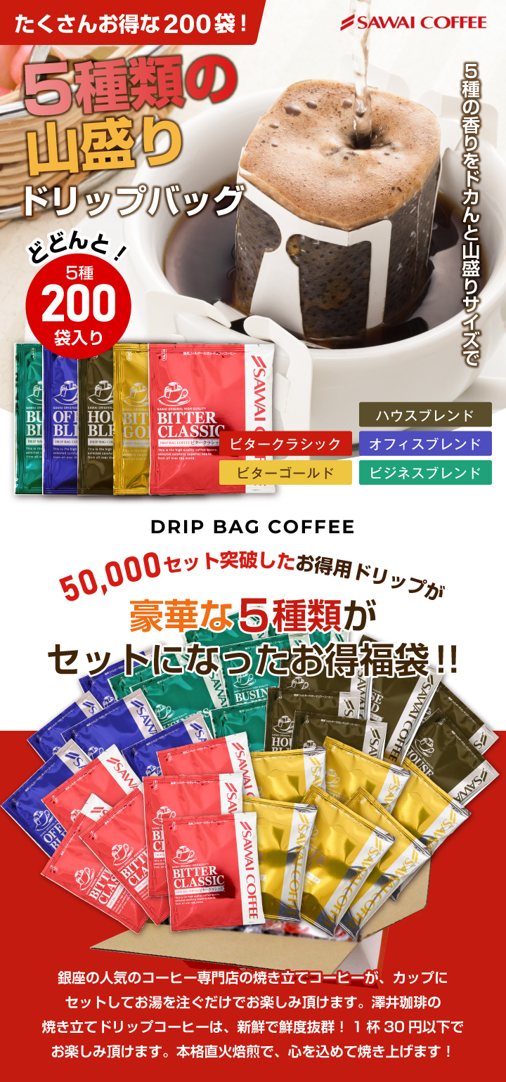 | 商品名 | ビタードリップバック 5種200杯分福袋 |