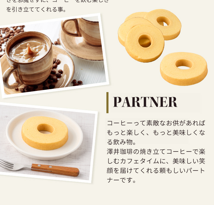 | 澤井珈琲厳選のミニ・バウムクーヘンは、ふんわりとしたケーキのような食感と、しっとり感が特徴のスイーツです。シンプルな素材で作られ、コーヒーの香りや味を邪魔せず、一緒に楽しむことでコーヒータイムがより特別なものになります。 1. ふんわり&しっとりの絶妙な食感 このミニバウムクーヘンは、卵、バター、小麦粉、砂糖というシンプルな素材で作られており、一層一層丁寧に焼き上げられています。そのため、ケーキのようにふんわりしており、口に入れると心地よいしっとり感が広がります。コーヒーと一緒に楽しむと、その優しい甘さがコーヒーの風味を引き立て、手が止まらなくなります。毎日のコーヒータイムを、さらに特別なひとときにしてくれる一品です。 2. コーヒーを邪魔せず引き立てるシンプルな美味しさ このバウムクーヘンの魅力は、シンプルさです。複雑なフレーバーがないため、どんなコーヒーとも相性が良く、特に澤井珈琲の焙煎されたコーヒーと一緒に楽しむことで、コーヒーの香りと味をしっかり堪能できます。浅煎り、中煎り、深煎り問わず、様々な種類のコーヒーを引き立てるため、どんなシチュエーションでも楽しめる万能なスイーツです。 3. 個包装でいつでも新鮮に楽しめる 澤井珈琲のミニ・バウムクーヘンは、一つ一つ丁寧に個包装されています。これにより、しっとりとした食感が長く保たれ、いつでも新鮮な状態で楽しむことができます。忙しい日常の中でも、ちょっとした休憩やカフェタイムにピッタリのサイズで、手軽に楽しめるのも大きな魅力です。コーヒーとスイーツを一緒に楽しむ時間が、さらに豊かで幸せなものになるでしょう。 | |