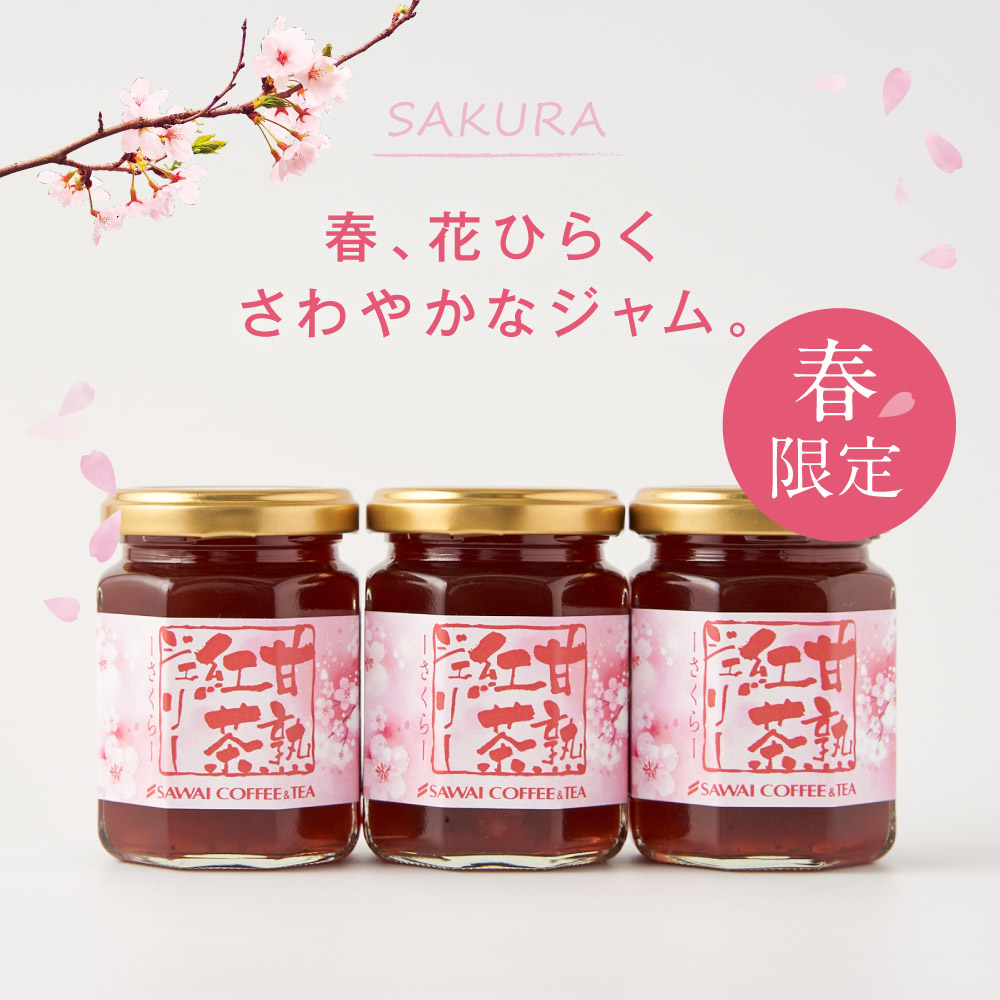 | 原材料 | 紅茶抽出液、グラニュー糖、桜加工品(桜ペースト(桜花塩漬、砂糖、桜葉塩漬)、砂糖、水あめ)、食酢(梅酢)、レモン汁(濃縮還元)/ペクチン/クチナシ色素、アカキャベツ色素(一部にリンゴを含む) |