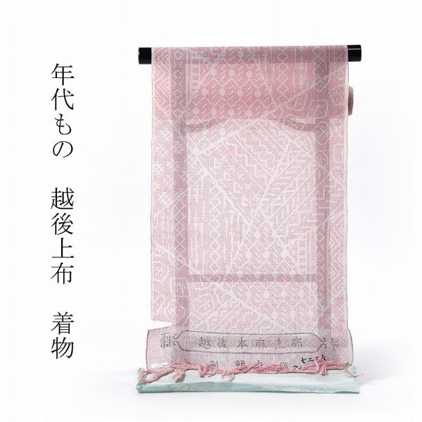 越後上布 フルオーダー手縫いお仕立て付き♪逸品!本麻 林宗平 最高級の夏着物 裂取り幾何学/白赤色 【越後縮】【裄67.5cmまで】【送料込み】