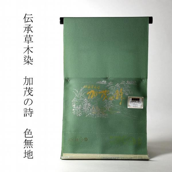 色無地 お仕立て付き 丹後ちりめん 伝承草木染 加茂の詩(共八掛け・八掛け付き) 薄緑色 裄70.5cmまで 着尺/反物/着物/和服/礼装