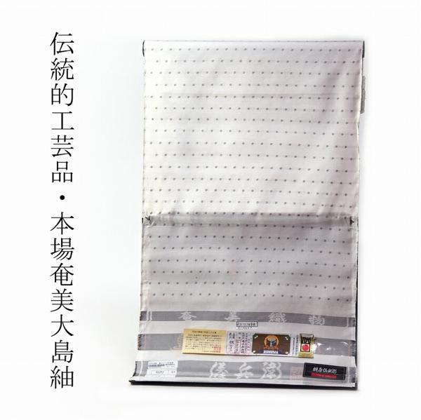 本場奄美大島紬 桝屋儀兵衛 白大島 真綿糸入り ドット 裄76cmまで 広幅反物 反物販売 送料込み 着物/和服