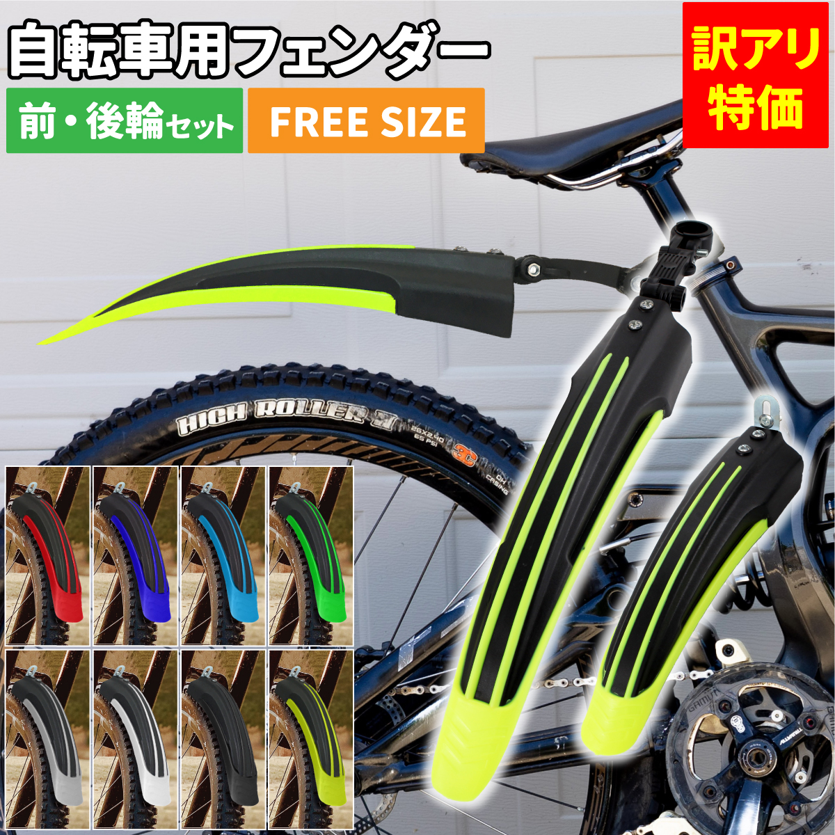 | 商品名 | [訳アリ特価]自転車用フェンダー フロント用・リア用セット |