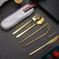 食器内容:はし、スプーン、フォーク、ナイフ、曲がったとストレートストロー、ストローブラシ、収納袋。