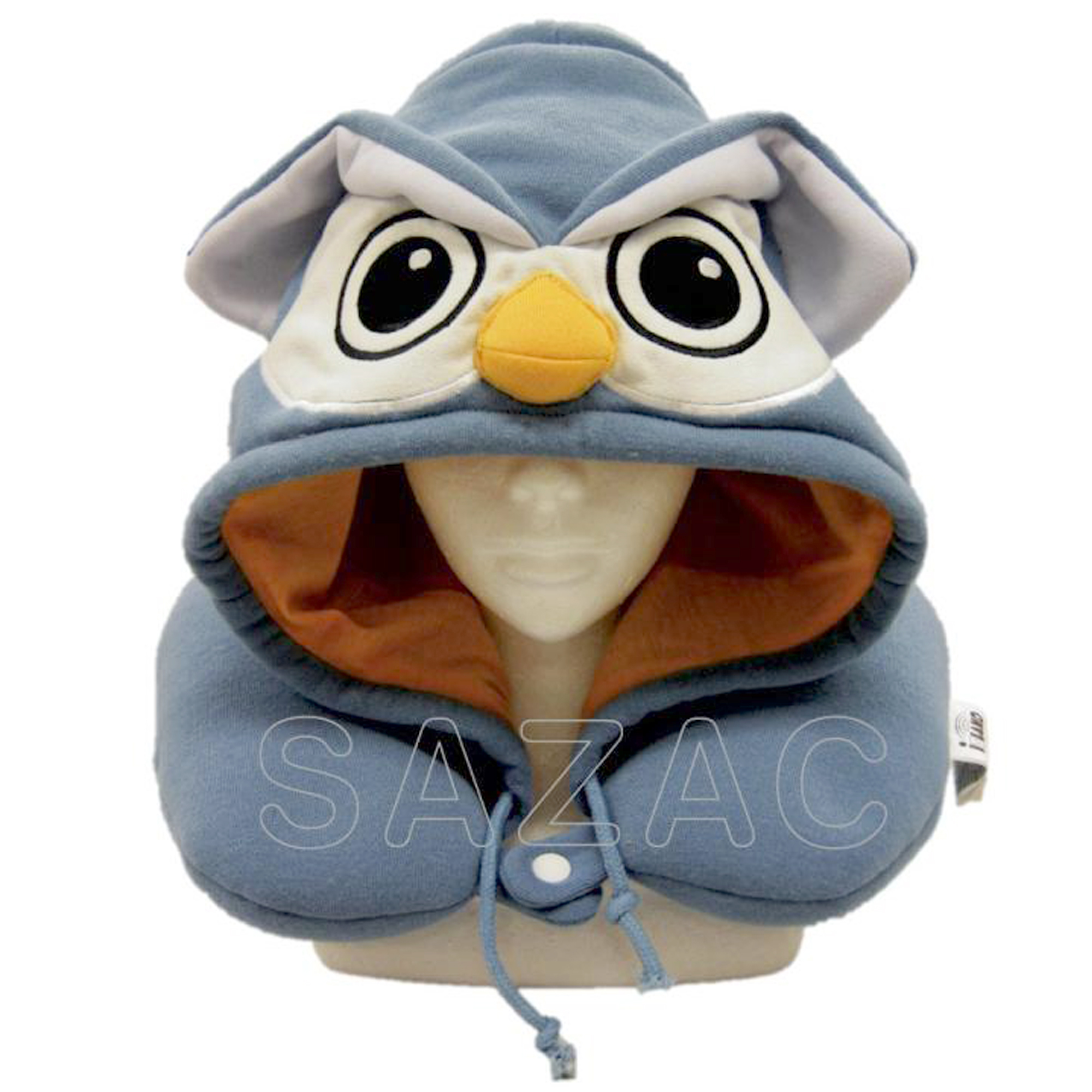 SAZAC サザック 2819 フクロウ ふくろう 梟 ネックピロー トラベル 旅行用 枕 飛行機用 昼寝 快眠 新幹線 U字型 低反発 首枕 キャラクター 雑貨 フード付き