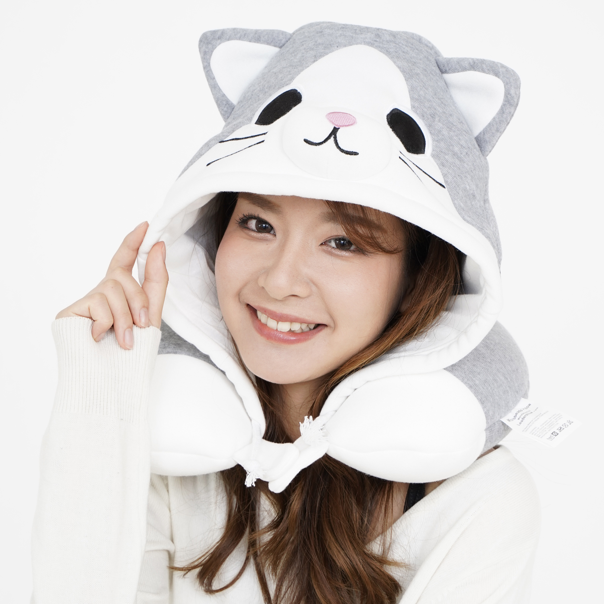 SAZAC サザック 2821 タビーキャット ネックピロー トラベル 旅行用 枕 飛行機用 昼寝 快眠 新幹線 U字型 低反発 首枕 キャラクター 雑貨 フード付き