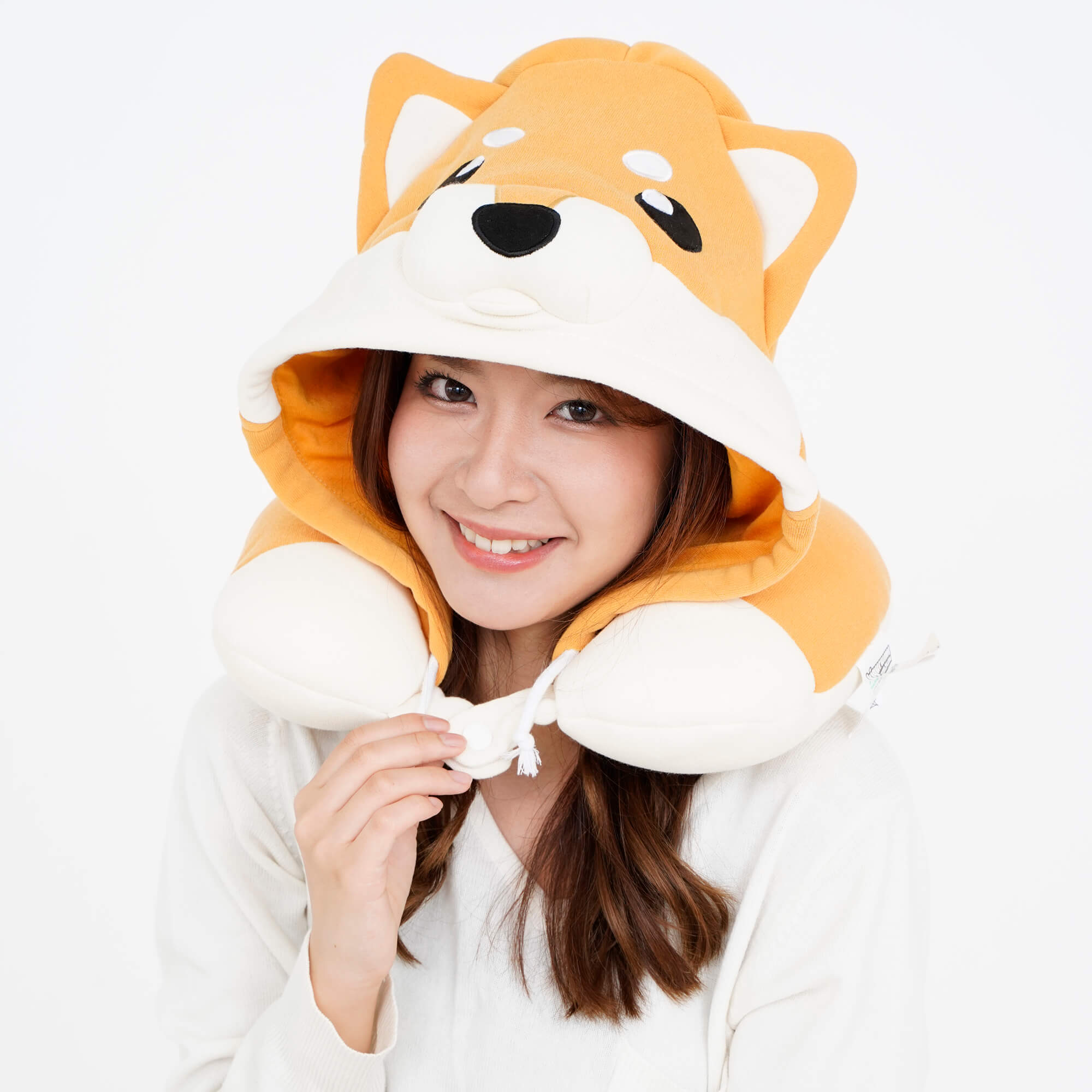 SAZAC サザック 2908 柴犬 ネックピロー トラベル 旅行用 枕 飛行機用 昼寝 快眠 新幹線 U字型 低反発 首枕 キャラクター 雑貨 フード付き