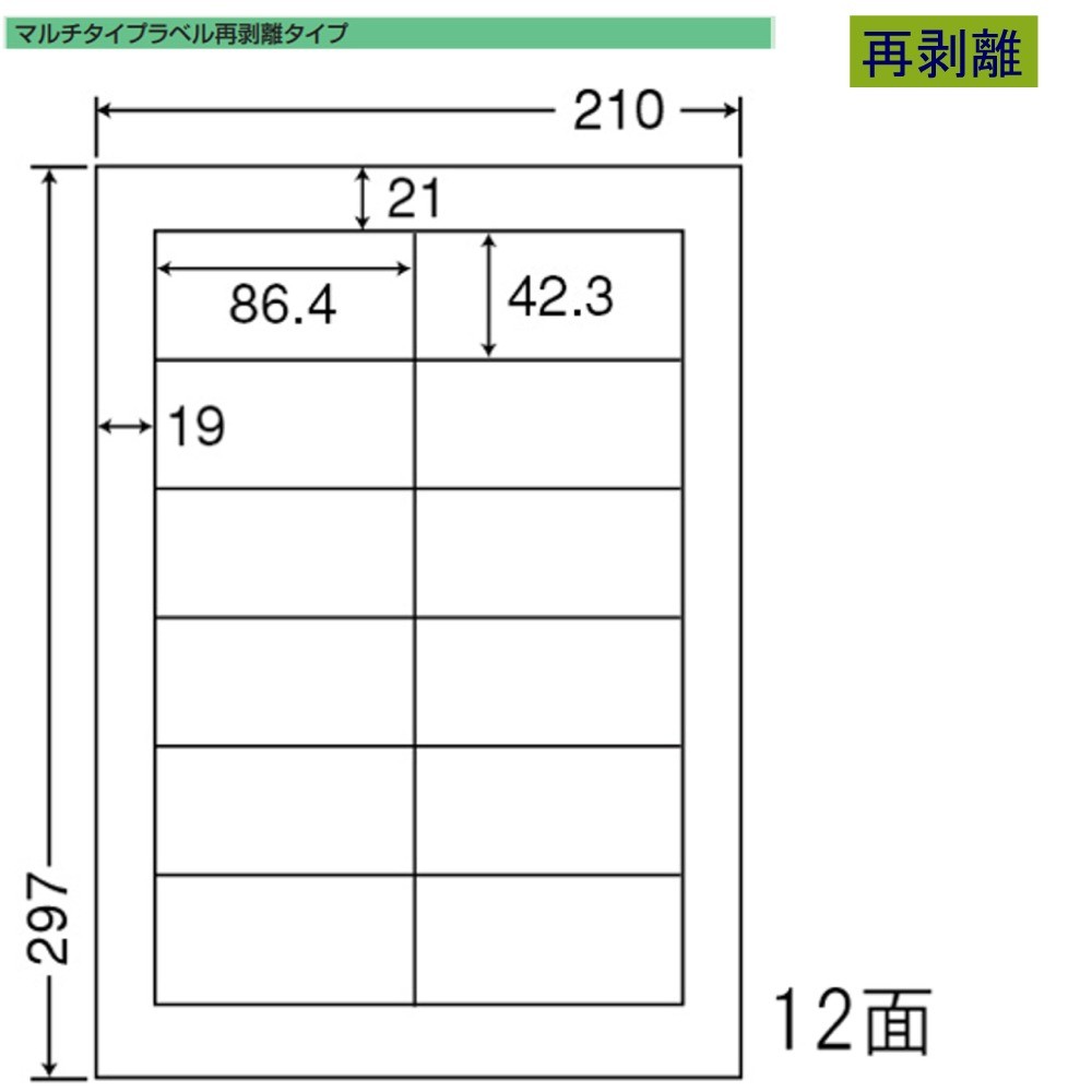 ★再剥離タイプ(きれいに剥がせるラベル)■メーカー:東洋印刷(nanaワード)■品番:LDW12PF■レーザー・インクジェット等マルチタイプ■シートサイズ:A4(297×210mm)■面付:12面■ラベルサイズ:86.4×42.3mm■500シート入り(ラベル6,000枚分)*こちらは1ケースでご購入のページです★お求めいただく数量で単価が変わります■基本特価の1ケース単位=401-0164(当店注文番号)■お得な2ケースセット=402-0164(当店注文番号)★更にお得な4ケースセット=404-0164(当店注文番号)★超お得な6ケースセット=405-0164(当店注文番号)★業務用大特価10ケースセット=406-0164(当店注文番号)