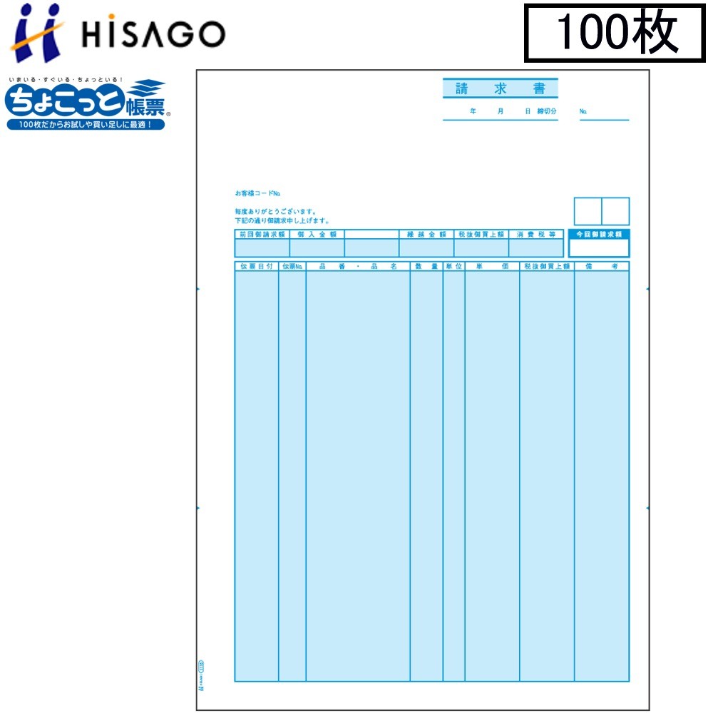 ヒサゴ プリンタ帳票 請求書 OP1116 100枚 ちょこっと帳票