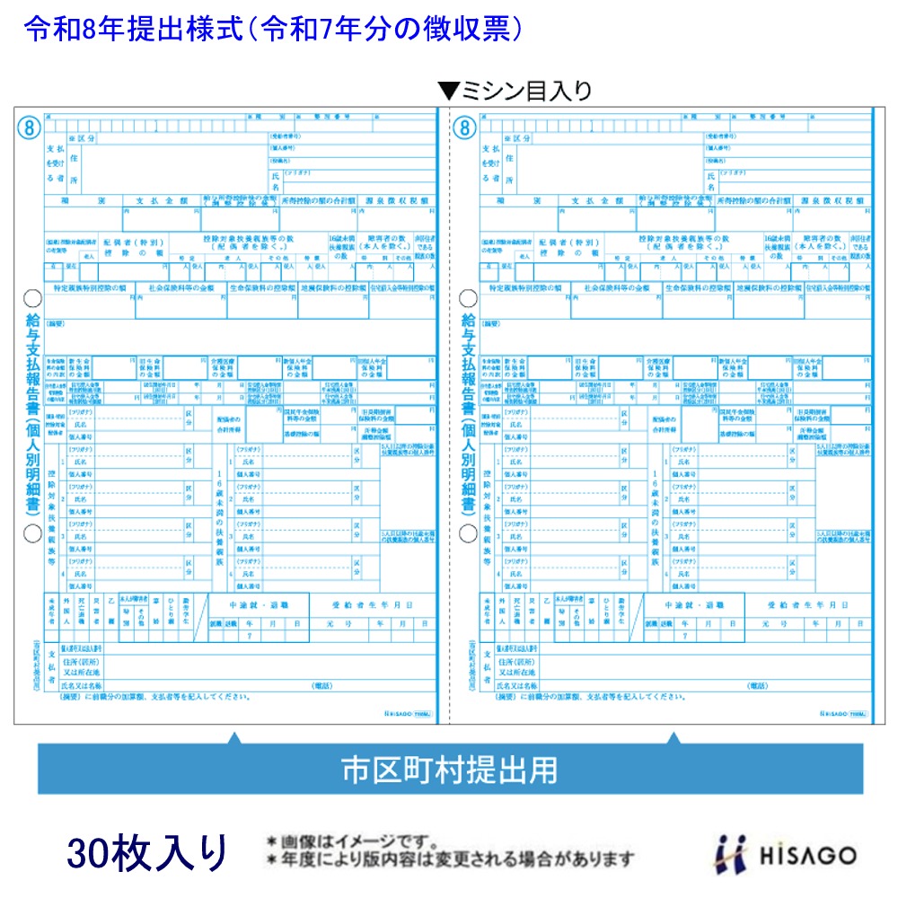 ヒサゴ 給与支払報告書(個人別明細書) OP1195MJR 30枚(令和8年提出用)