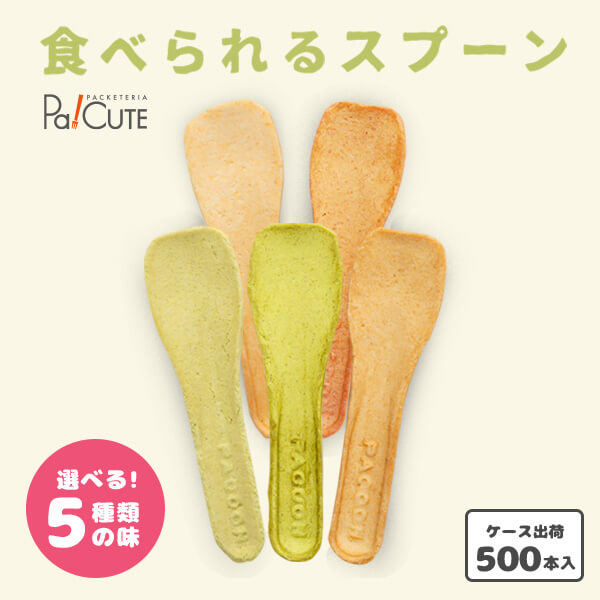 「食べれるスプーン(PACOON) ※5種の味 500枚」食べれる スプーン 食器 カトラリー スプーン型 クッキー エコ テイクアウト お持ち帰り カフェ 国産 無添加