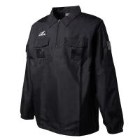 冬専用のピステジャケットスタイルのレフェリートップで、ボリュームのあるシャツなどの上に着用できる上に、撥水加工の表地が雨風の侵入を抑え、トリコット起毛の裏地が温かさをキープします。最新の公式戦のルールに沿ったワッペンを装着できるので公式戦で着用できます。