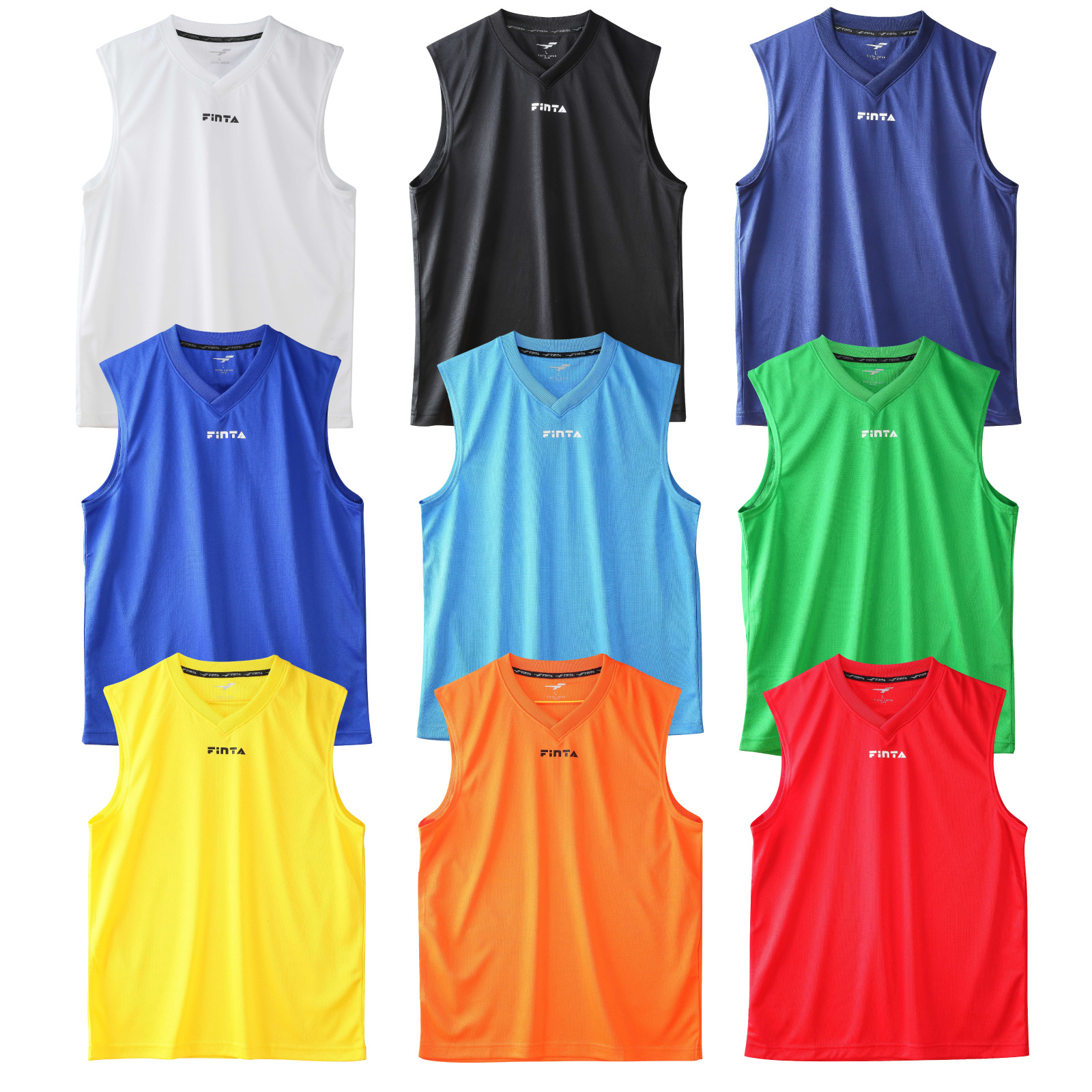 ブラジル生まれの大人気のサッカー、フットサルのブランド・FINTAの大人用ノースリーブシャツ。9色展開なのでユニホームの下などに合わせやすい。軽く乾きやすく通気性の高いメッシュ素材で快適なコンディションをキープします。