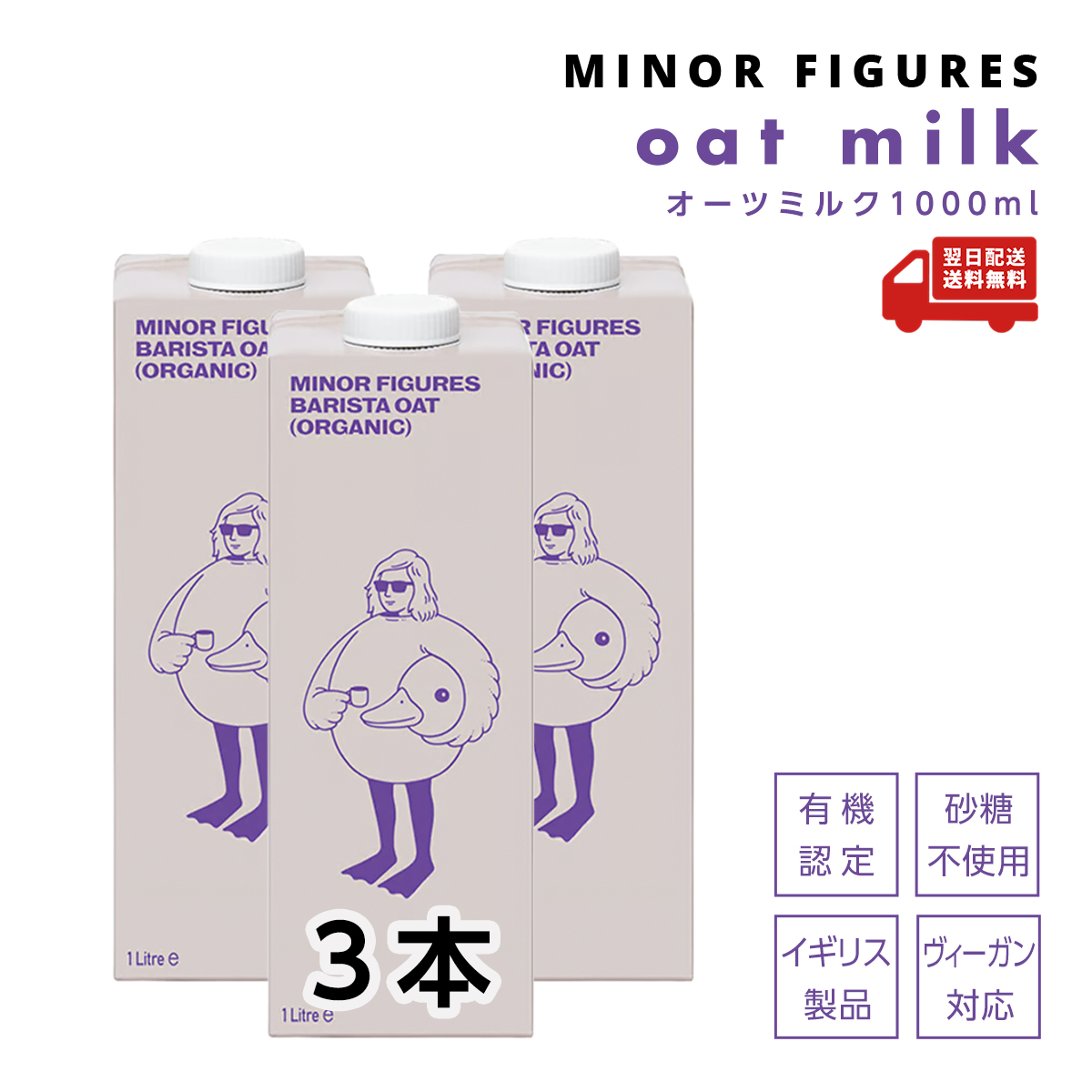マイナーフィギュアズ オーツミルク 1000ml×3本セット ケース販売 バリスタ専用 イギリス産 有機JAS認定 オーツ麦 砂糖不使用 植物性飲料 ミルク ヴィーガン