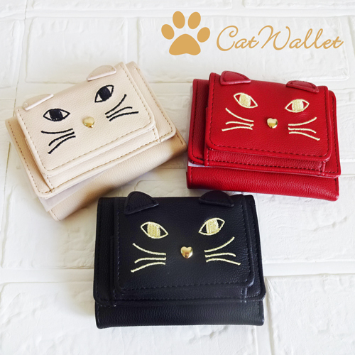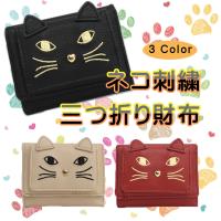 【メール便送料無料】財布 三つ折り財布 ウォレット レディース ネコ 刺繍/猫