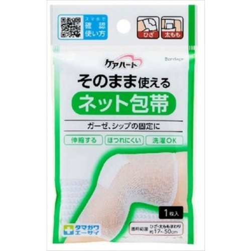 タマガワエーザイ ケアハート そのまま使える ネット包帯 ひざ・太もも (1枚) ガーゼ シップの固定に