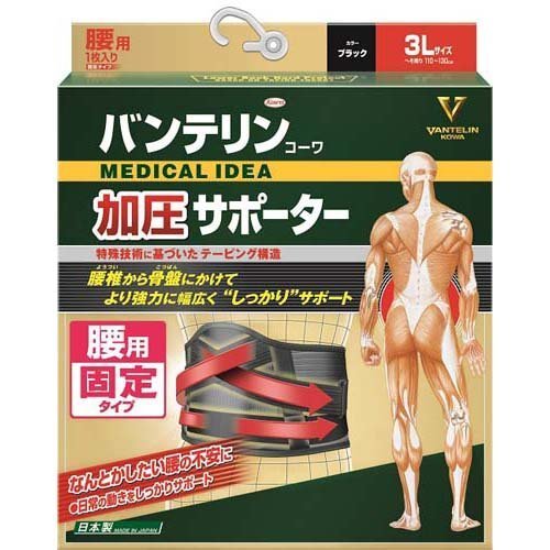 バンテリンコーワ サポーター 腰用加圧 ワイド 3L ブラック (1枚) しっかりサポート
