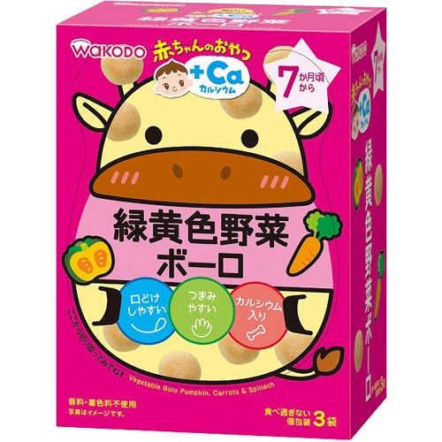 [A] 和光堂 赤ちゃんのおやつ+Ca カルシウム 緑黄色野菜ボーロ (15g×3袋) 7か月頃から
