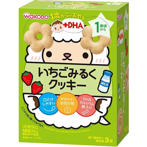 [A] 和光堂 1歳からのおやつ+DHA いちごみるくクッキー (16g×3袋) 1歳頃から