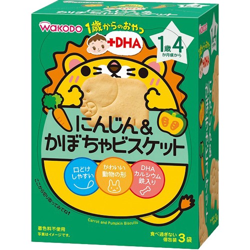 [A] 和光堂 1歳からのおやつ+DHA にんじん&かぼちゃビスケット (11.5g×3袋) 1歳4か月頃から