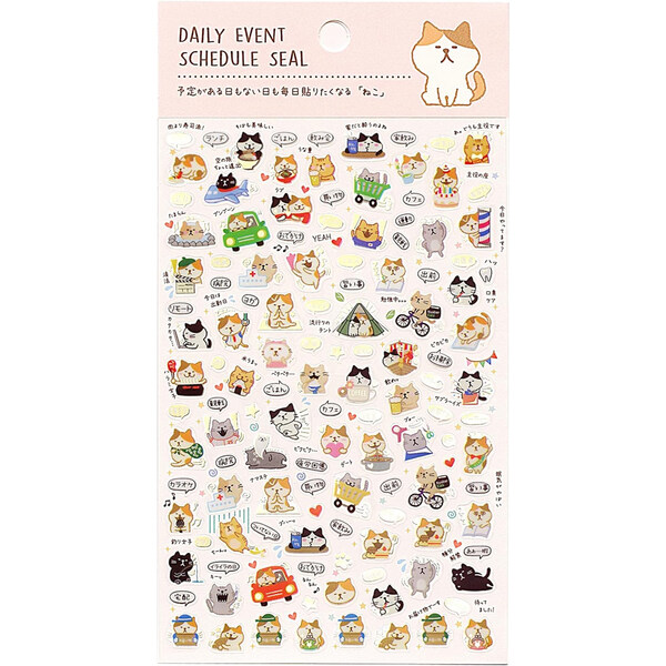 金箔スケジュールシール ねこ 猫 ネコ クリアタイプ PET素材 予定 手帳 カレンダー デコレーション かわいい パインブック [01] 〔合計1100円以上で購入可〕