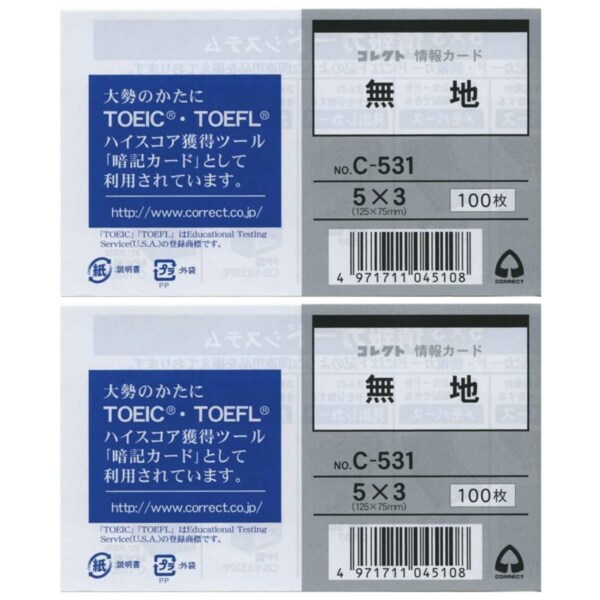 大勢のかたにTOEIC・TOEFLのハイスコア獲得ツール「暗記カード」として利用されている情報カードです2個セット商品です。