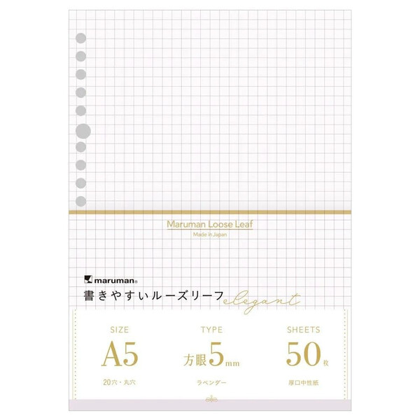 マルマン 書きやすいルーズリーフ エレガント ラベンダー 5mm方眼罫 A5 [01] 〔合計1100円以上で購入可〕