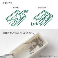 たたむ時は「LOCK」、使うときは「SET」の方向に内側にある押し刃をスライドしてください。