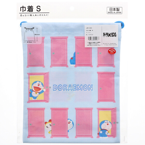 ドラえもん キャラクター巾着 S サックス 18×22cm コップ袋 歯ブラシセット 収納 入園 入学 日本製 マルヨシ [01] 〔合計1100円以上で購入可〕