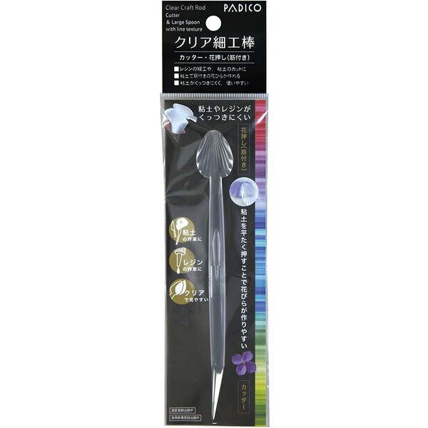 クリア細工棒 カッター 花押し 筋付き クレイフラワー 粘土 細工 レジン パジコ [01] 〔合計1100円以上で購入可〕