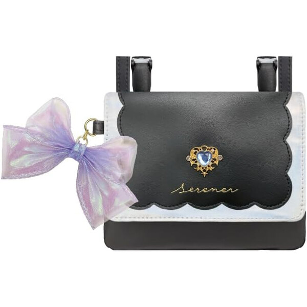 ワイドポシェットポケット オーロラブラック リボン ハートパーツ付 移動ポケット 2WAY かわいい 入学 クラックス [02] 〔合計1100円以上で購入可〕