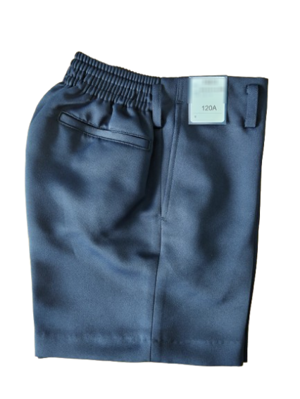 東レのやや濃い目の生地使用。しっかりとした縫製。太もも半分丈の半ズボン。少し濃いめの紺色。