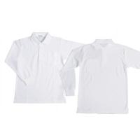 ![]() 前身頃 ![]() 後ろ身頃 ![]() 左胸元にポケット付。名札フォルダーもついています。 ![]() 袖口は絞ってあり、袖をまくってもさがりにくくなっています。 |