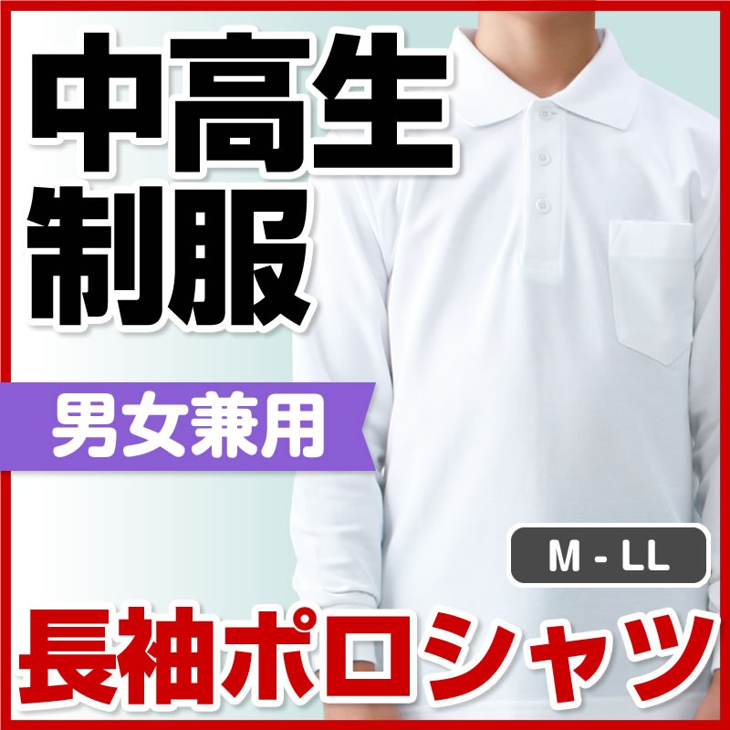 【売り尽くし】中学生 高校生 制服 長袖 ポロシャツ M/L/LL 男女兼用 ポリ綿混 白色 スクール用 お仕事にも