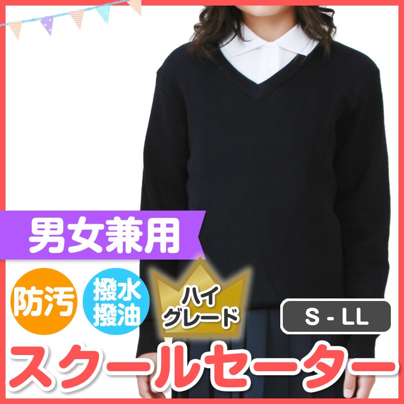 セール【売り尽くし】小学生 制服 ハイグレード スクール セーター S/M/L/LL 男女兼用 防汚 撥水 撥油 紺色