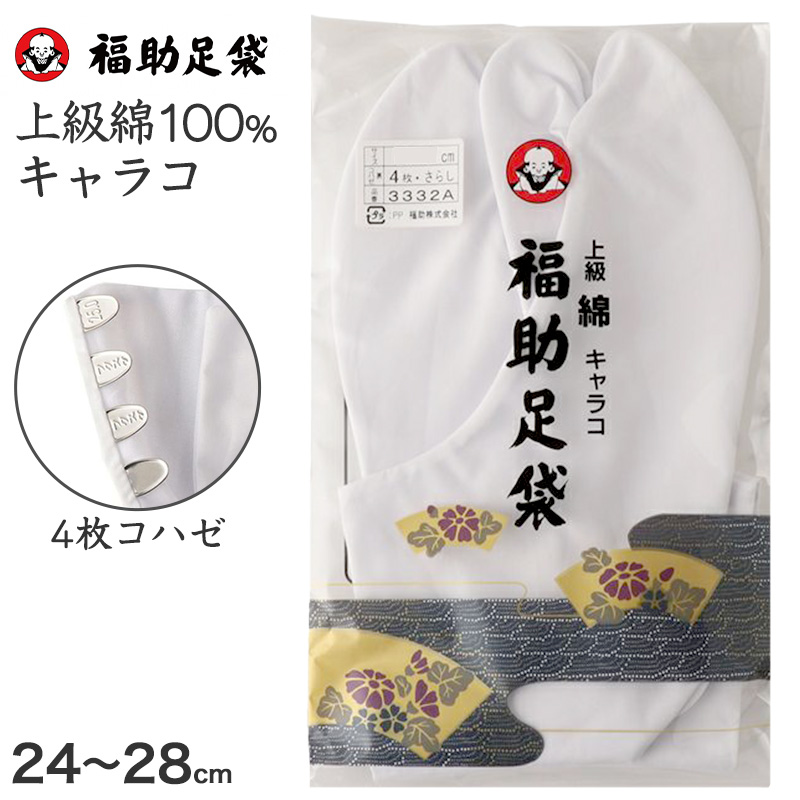 足袋 白 礼装用 福助足袋 綿100 4枚コハゼ 男性 女性 日本製 22〜28cm (綿 冠婚葬祭 着物 小物 和装 婦人 紳士 晒裏) (在庫限り)