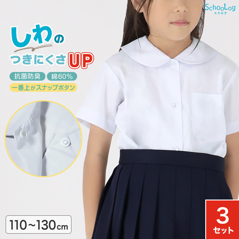 女子(女児)用半袖丸衿ブラウス(スナップボタン)3枚セットです。