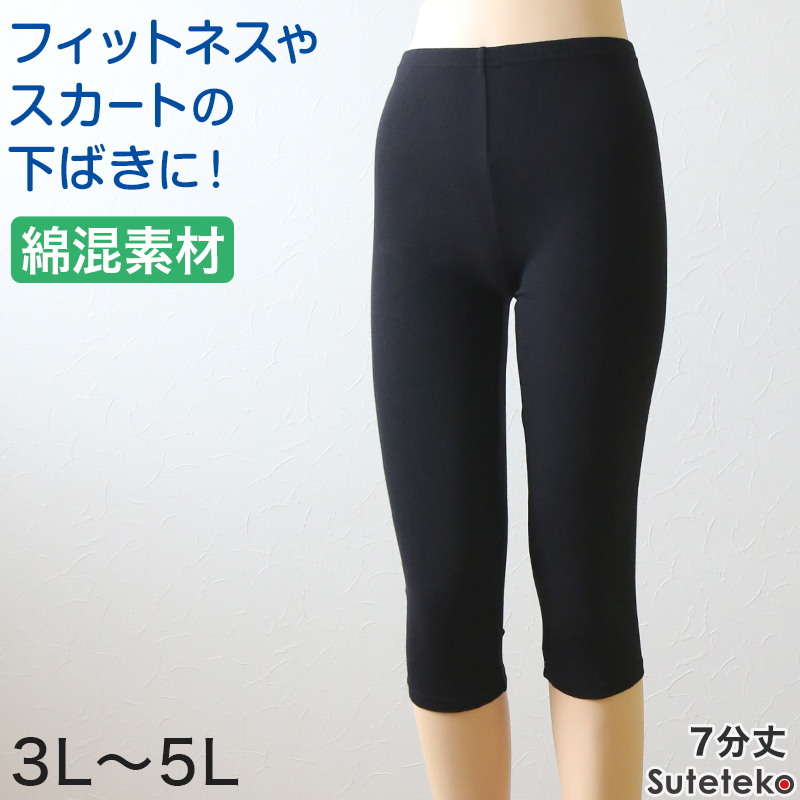 Suteteko 女性用 綿混 7分丈スパッツ(3L〜5L)「商品番号:stk115b」