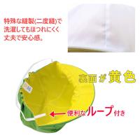 裏側が黄色になっている、外へのおでかけや遠足で活躍する定番スタイルの園児帽子。