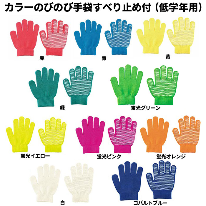 カラーのびのび手袋(滑り止め付) カラー軍手 低学年用全10色 長さ約15.5×幅約13cm 1双