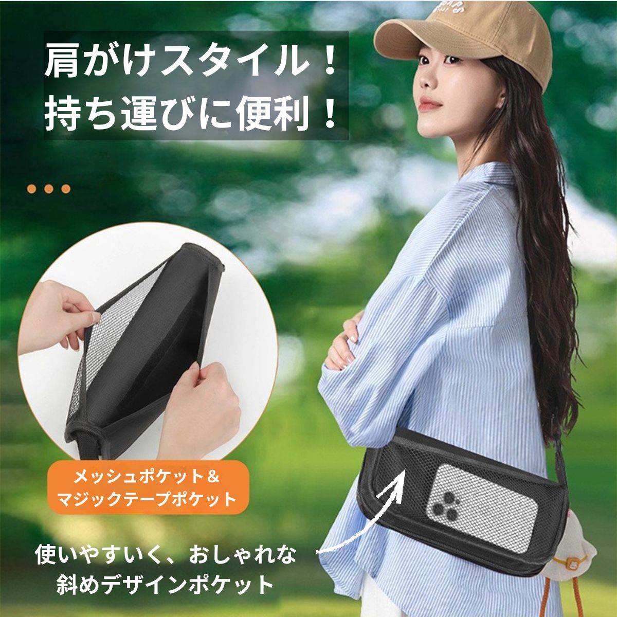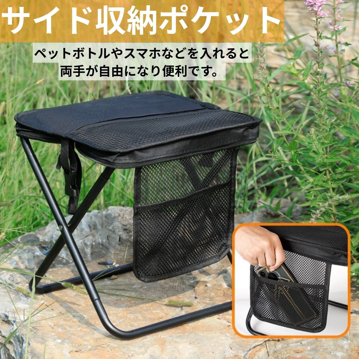 マホや財布を入れられる便利なサイドポケット付きで、キャンプやピクニック、公園、釣りなど幅広いシーンで活躍します。