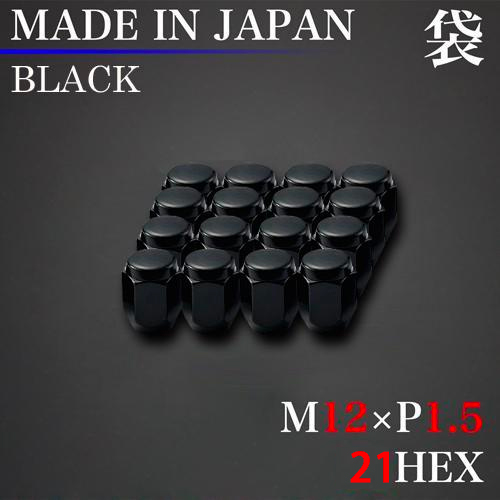 日本製 ラグナット ホイール ナット 16個 (袋) M12×P1.5 21HEX ブラック 12×1.5 スチール 黒