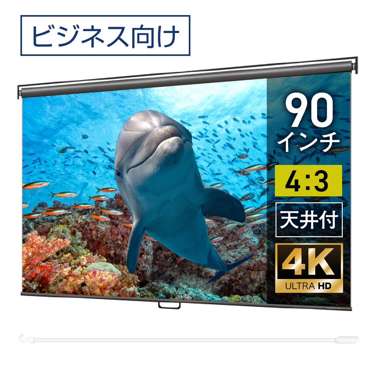 90インチ(4:3) フルハイビジョン、4Kプロジェクターに対応したハイビジョンマット2生地を採用。防炎認定。