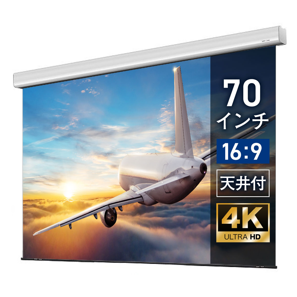 80インチ(16:9) フルハイビジョン、4Kプロジェクターに対応したハイビジョンマット2生地を採用。