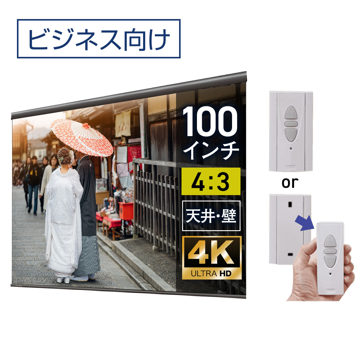 シアターハウス プロジェクタースクリーン 遠距離操作電動スクリーン ケースなし(4:3)スタンダード 100インチ マスクフリー 日本製 WRF2033FEH