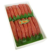 原材料:助宗鱈卵(北海道)、食塩/調味料(アミノ酸等)、酸化防止剤(ビタミンC)、ナイアシン、着色料(赤102、黄5)、発色剤(亜硝酸Na)、酵素