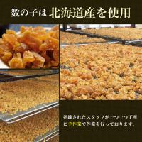 原材料:にしん卵(北海道産)、砂糖・異性化糖、食塩、醤油、米発酵調味料、植物油、しょうが/調味料(アミノ酸等)、カラメル色素、甘味料(甘草)、酸味料(一部に小麦・大豆を含む)