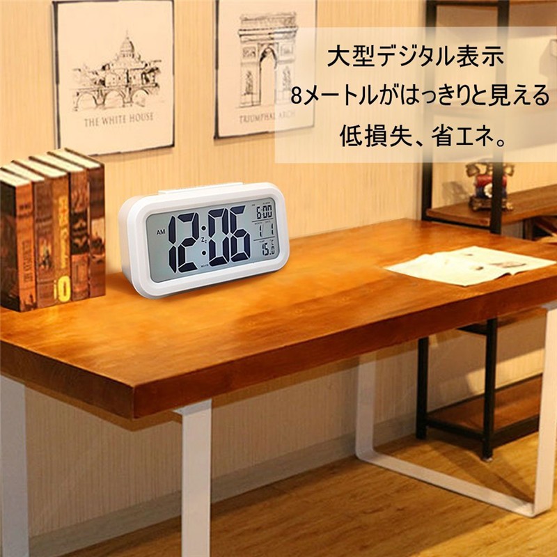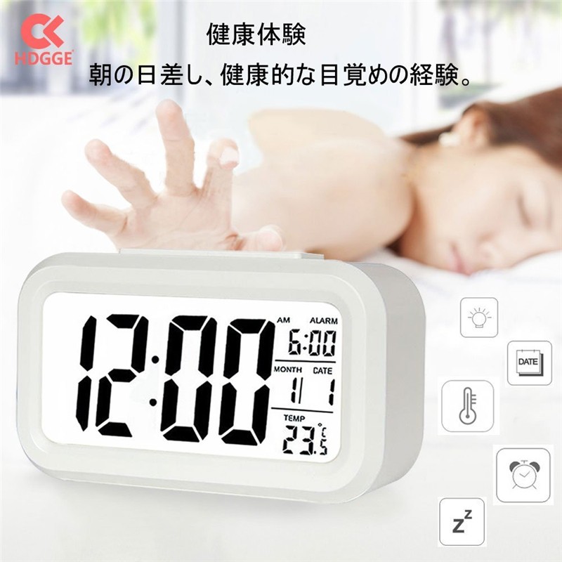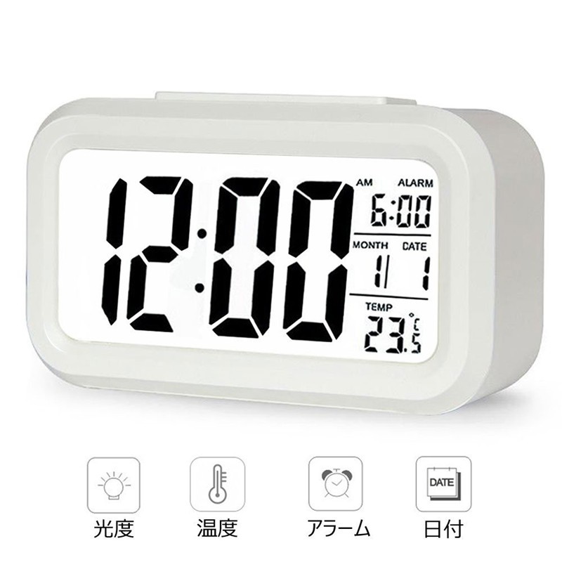 目覚まし時計 デジタル大画面 見やすい置き時計カレンダー表示センサーライト大音量自動点灯 /温度計 / アラーム/目覚ましどけい