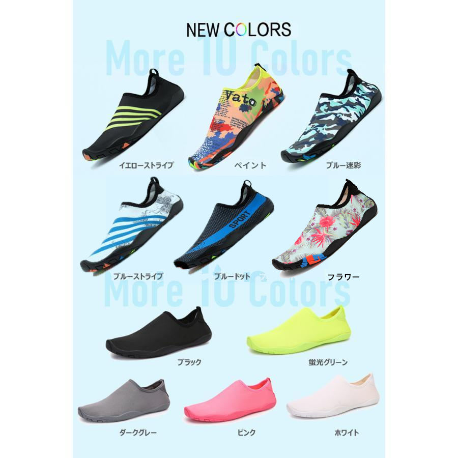 【多用途】水遊び、海水浴、散歩、お出掛け、アウトドアシーン、マリンレジャーや川遊び、サンダル、ウォーターパーク、ビーチ、マリンスポーツやダイビング、シュノーケリング、室内スポーツや、ジムなどでもランニングシューズ、ガーデニング、車の洗浄など、幅広い分野で使えます。