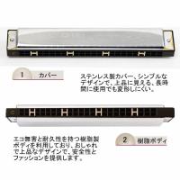 【音階】音階をステンレス製カバーに記されており、一般的なハーモニカと比べて、目に見えやすく、初心者にとって、覚えやすい。